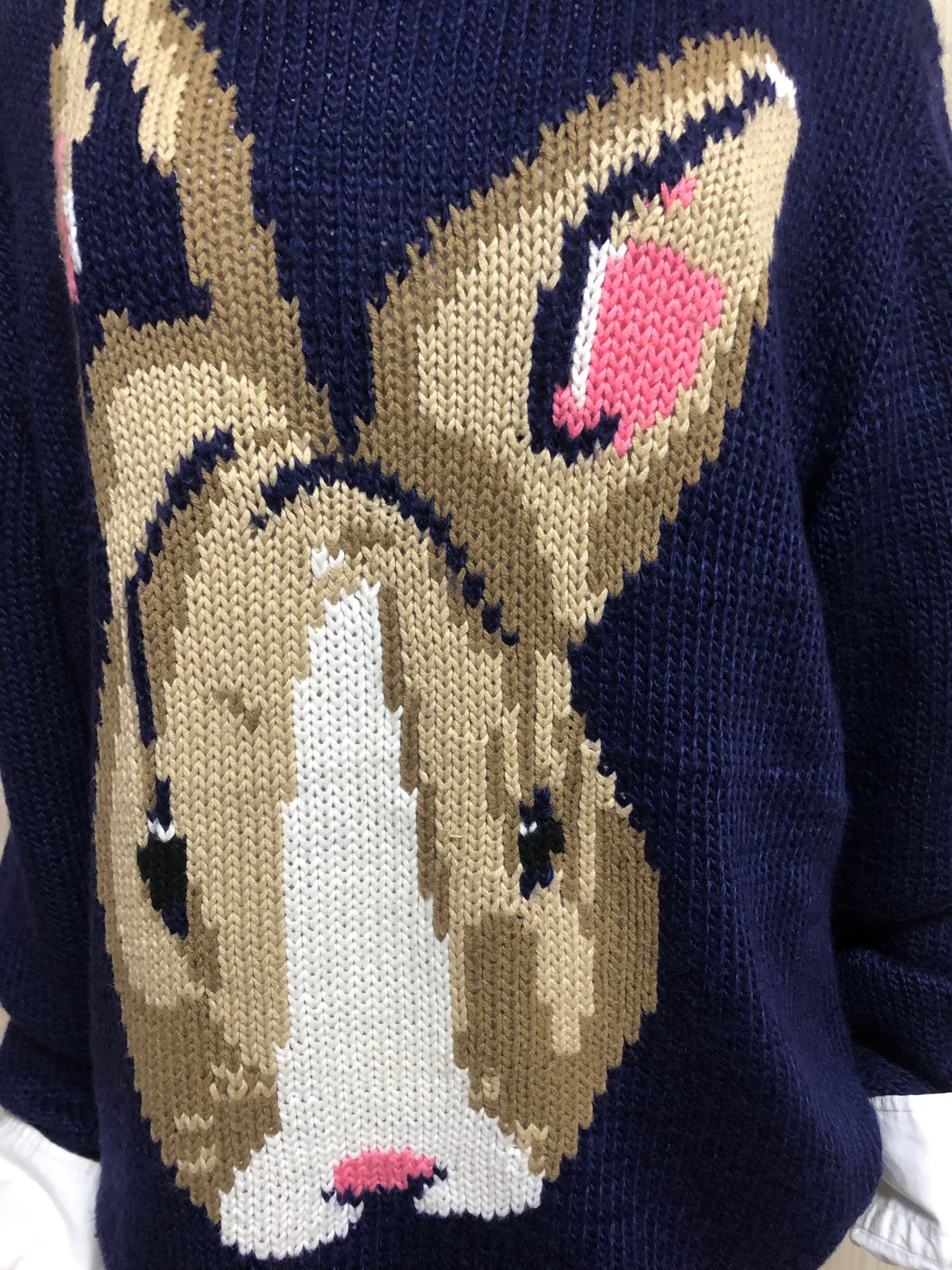デンマーク出身のデザイナー、ピーター・イェンセンのニット。大きなウサギがとっても可愛くインパクトがありますが、ブラウスやロングシャツに合わせると大人っぽく着れておすすめです♡とても柔らかでボリュームが出過ぎずすっきりとしたシルエットで着て頂けます◎