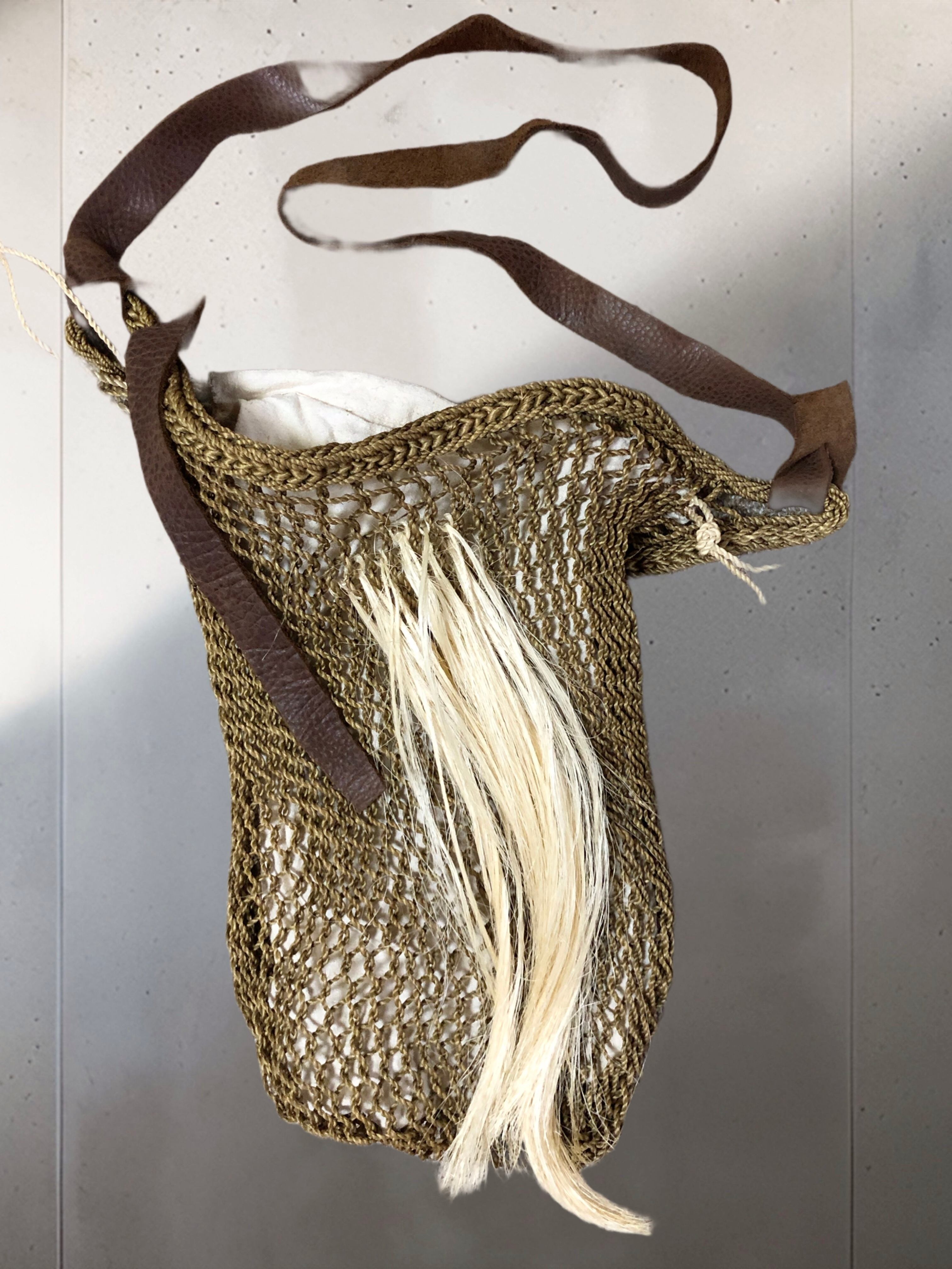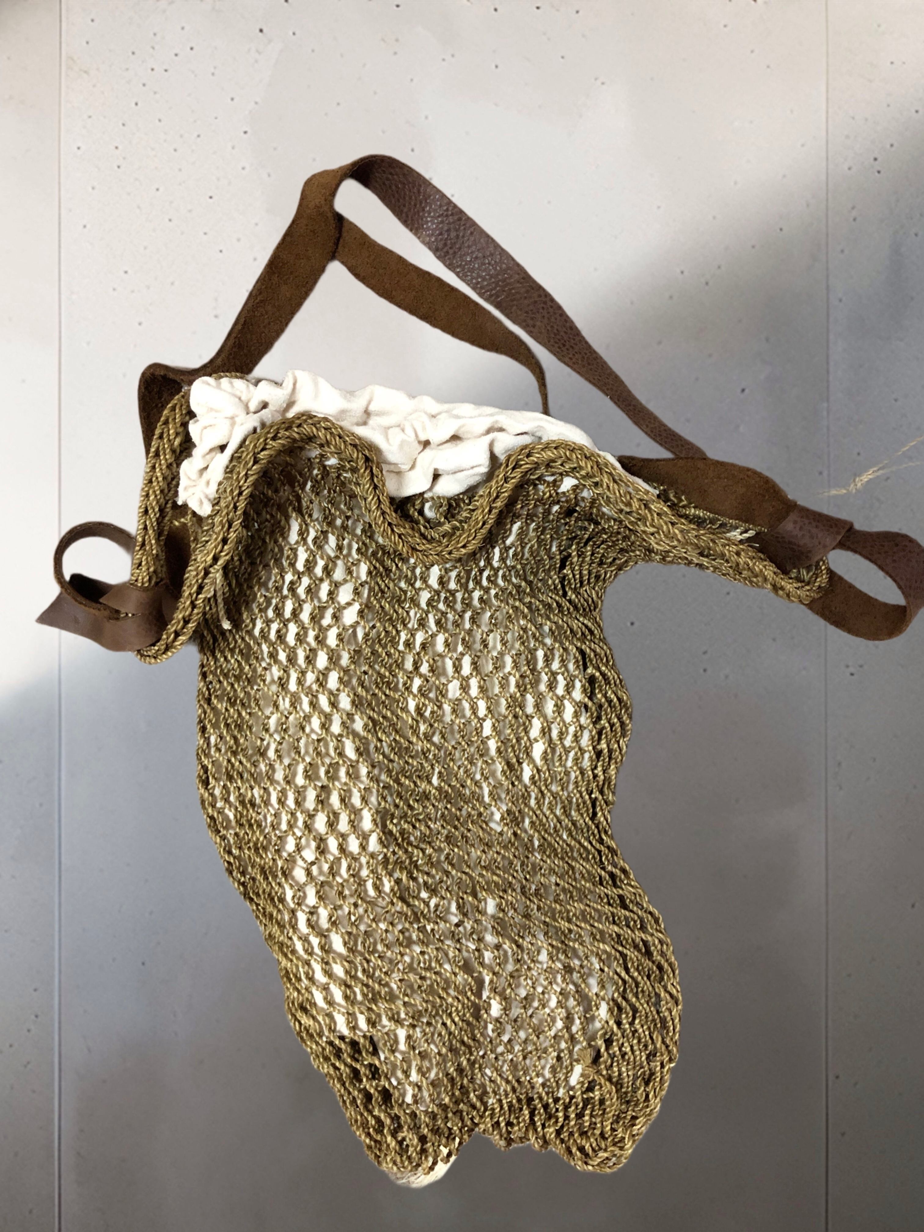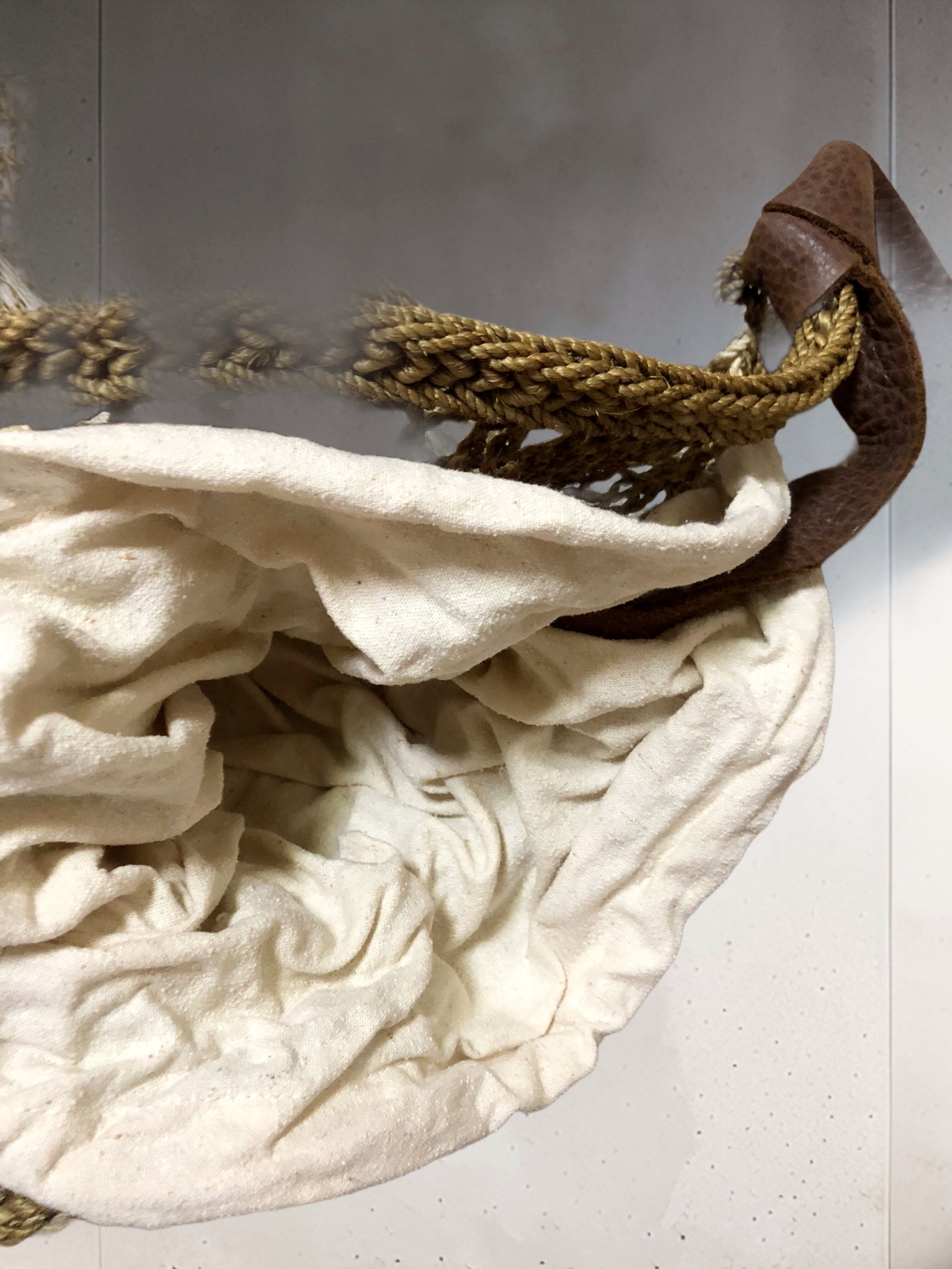おそらく天然素材で編まれたと思われるショルダーバッグ。ショルダーの革や植物の繊維のフリンジなど、どこかエッジの効いたデザインです◎シンプルなコーディネートにサラッと合わせるとこなれ感が出そうです♡コットンのインナーバッグが付いているのでしっかり実用性もあります◎