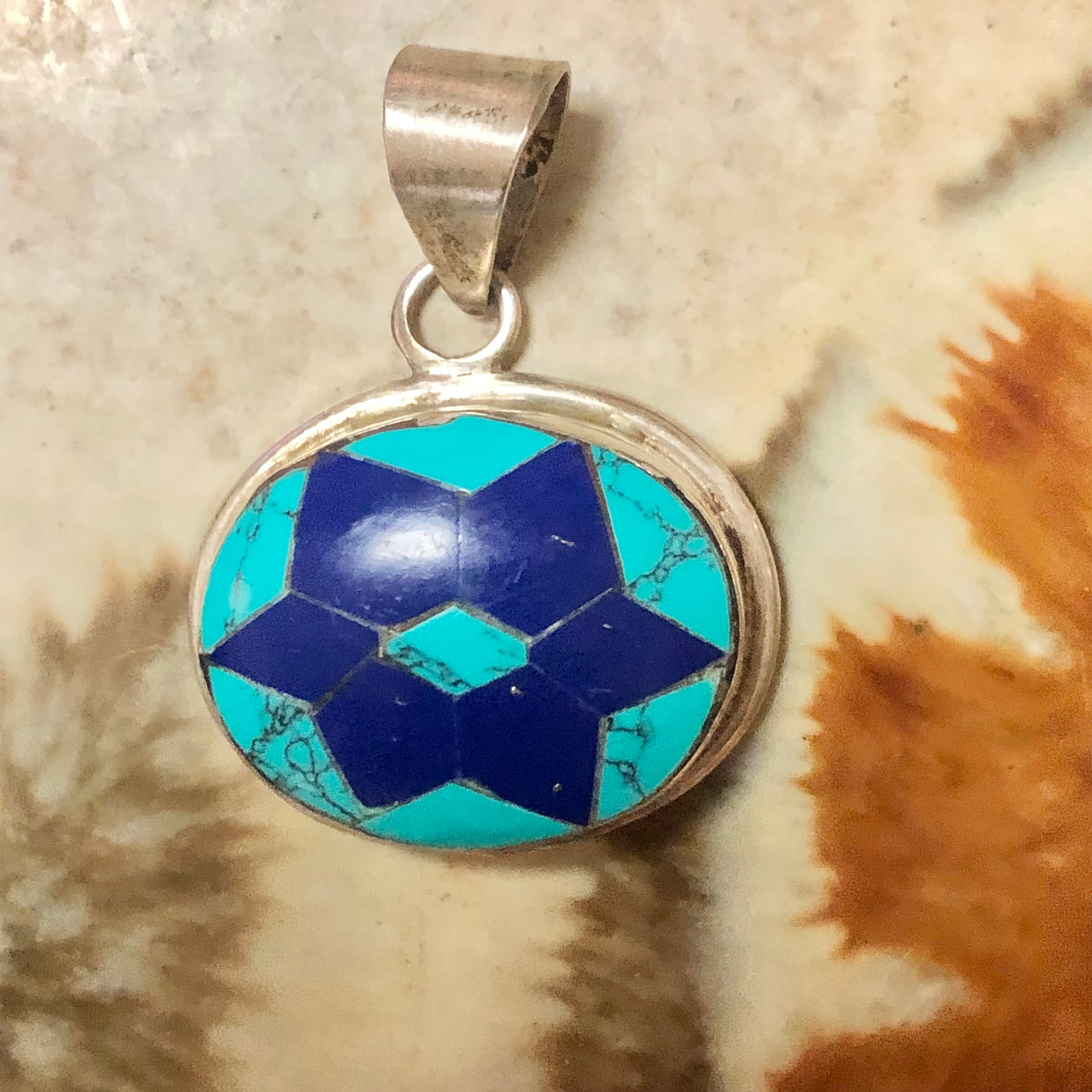 ターコイズとラピスラズリのシルバーペンダントトップ。ぷっくりと厚みのあるデザインですが、軽くて着けやすいトップです◎パキッとしたカラーがとても映えてコーディネートを引き締めてくれそうです♡