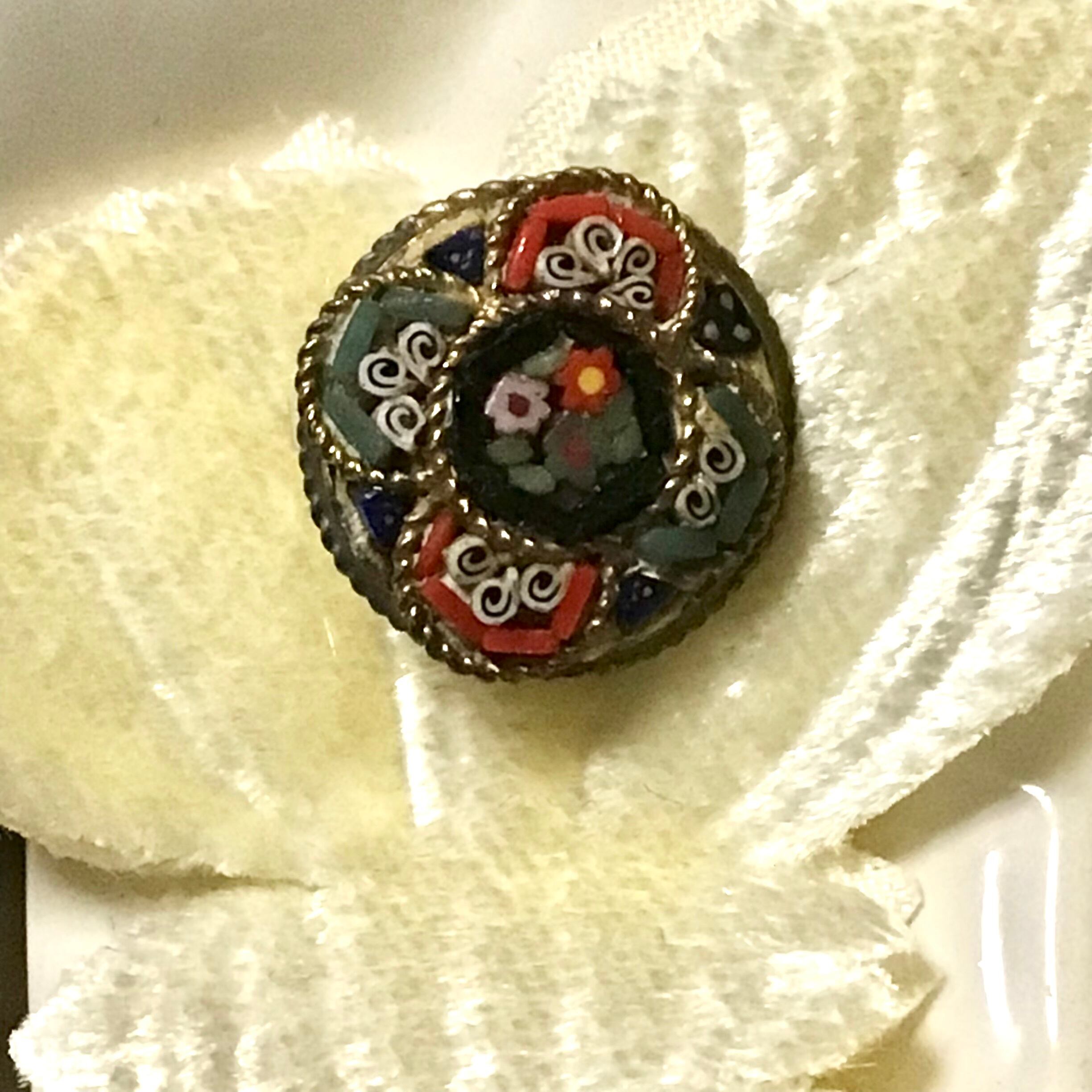 アンティークのマイクロモザイクイヤリング。とても細かなモザイクで繊細さと職人さんの手で作られた温もりを感じるお品♡抑えめのカラーでいろいろなコーディネートに合いそうです◎