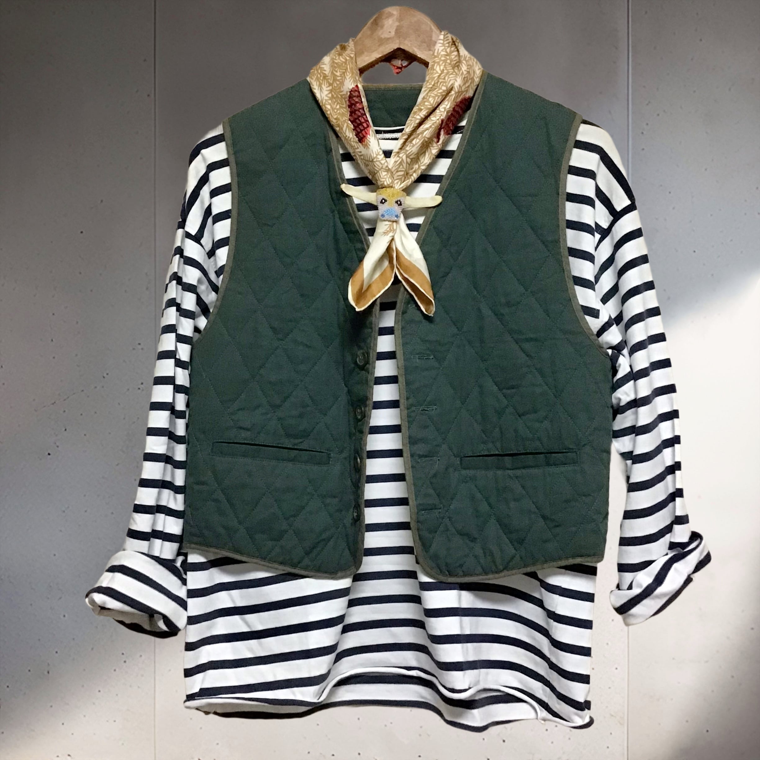 フランスメイドのキルティングベスト。何でもないデザインですが、どこかパリのエスプリを感じます♡ボーダーやニットに、コートのインナーにもおすすめです◎