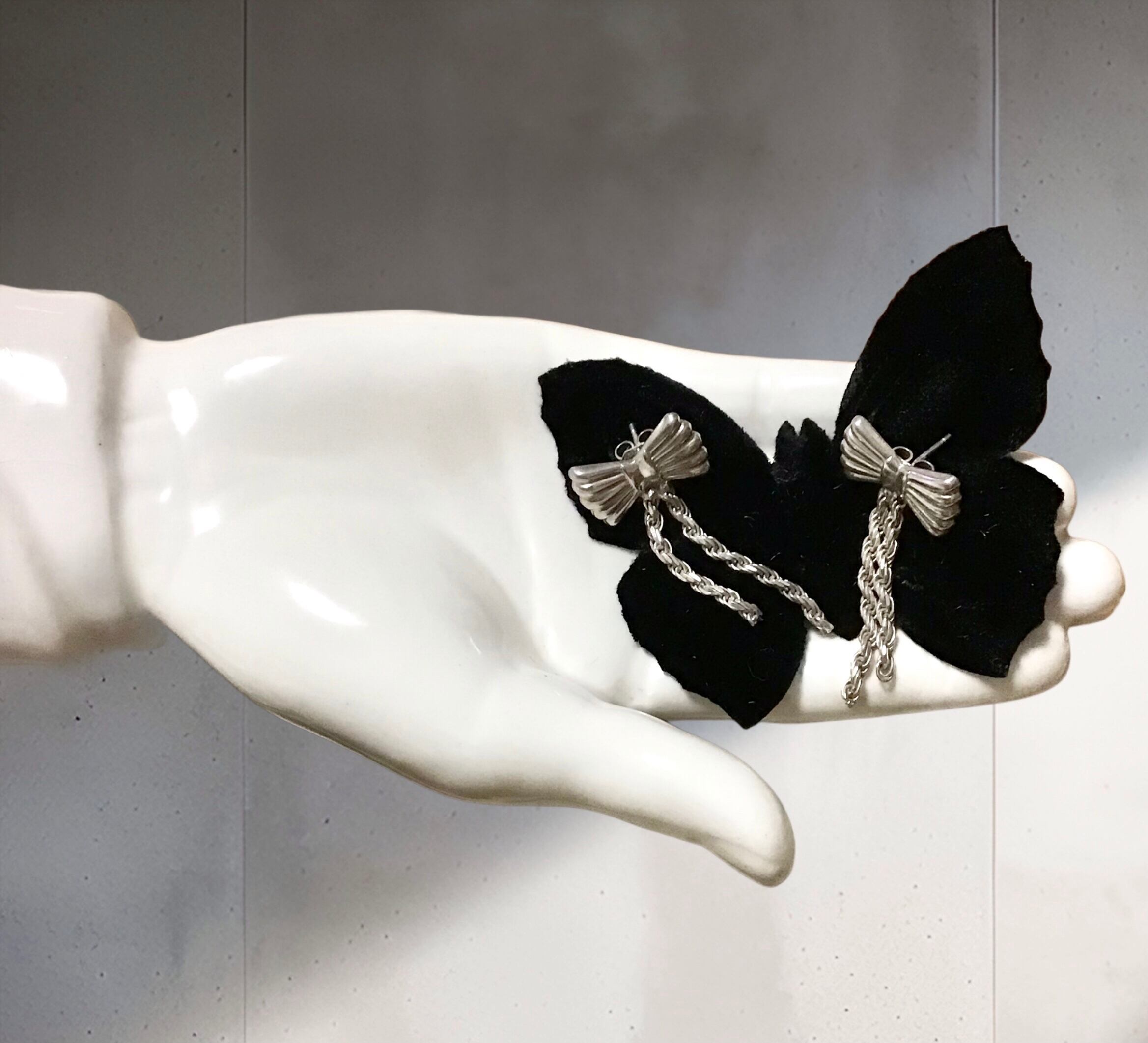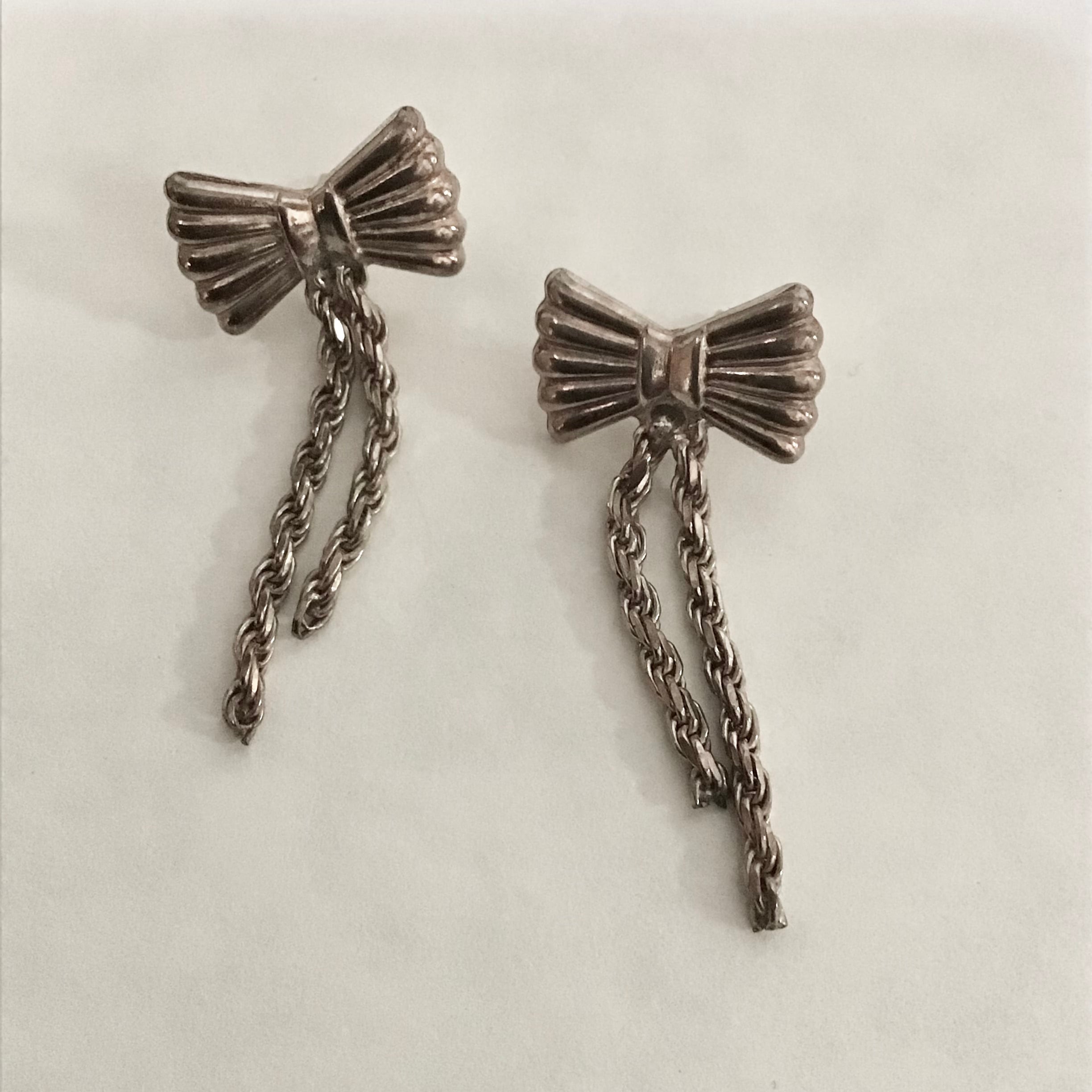 イタリアンシルバー製のリボンピアス。シャラシャラと揺れるチェーンが小ぶりでも存在感があり素敵です♡軽くて付けやすいのも嬉しいポイント◎ギフトにもおすすめの一品です!