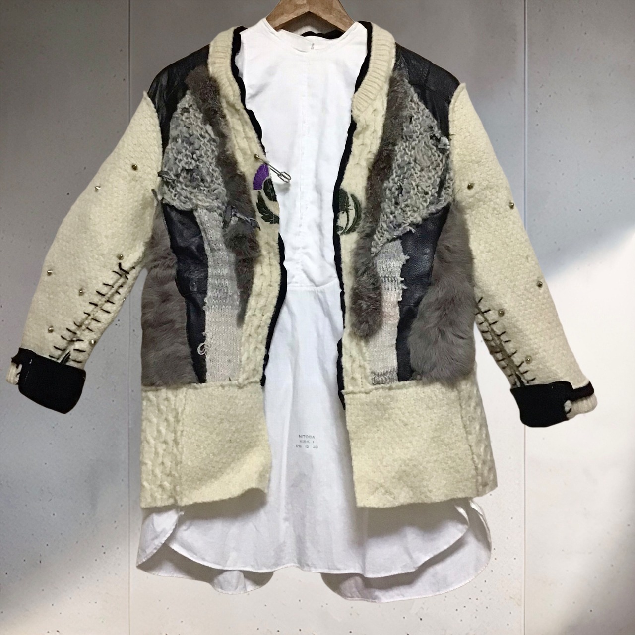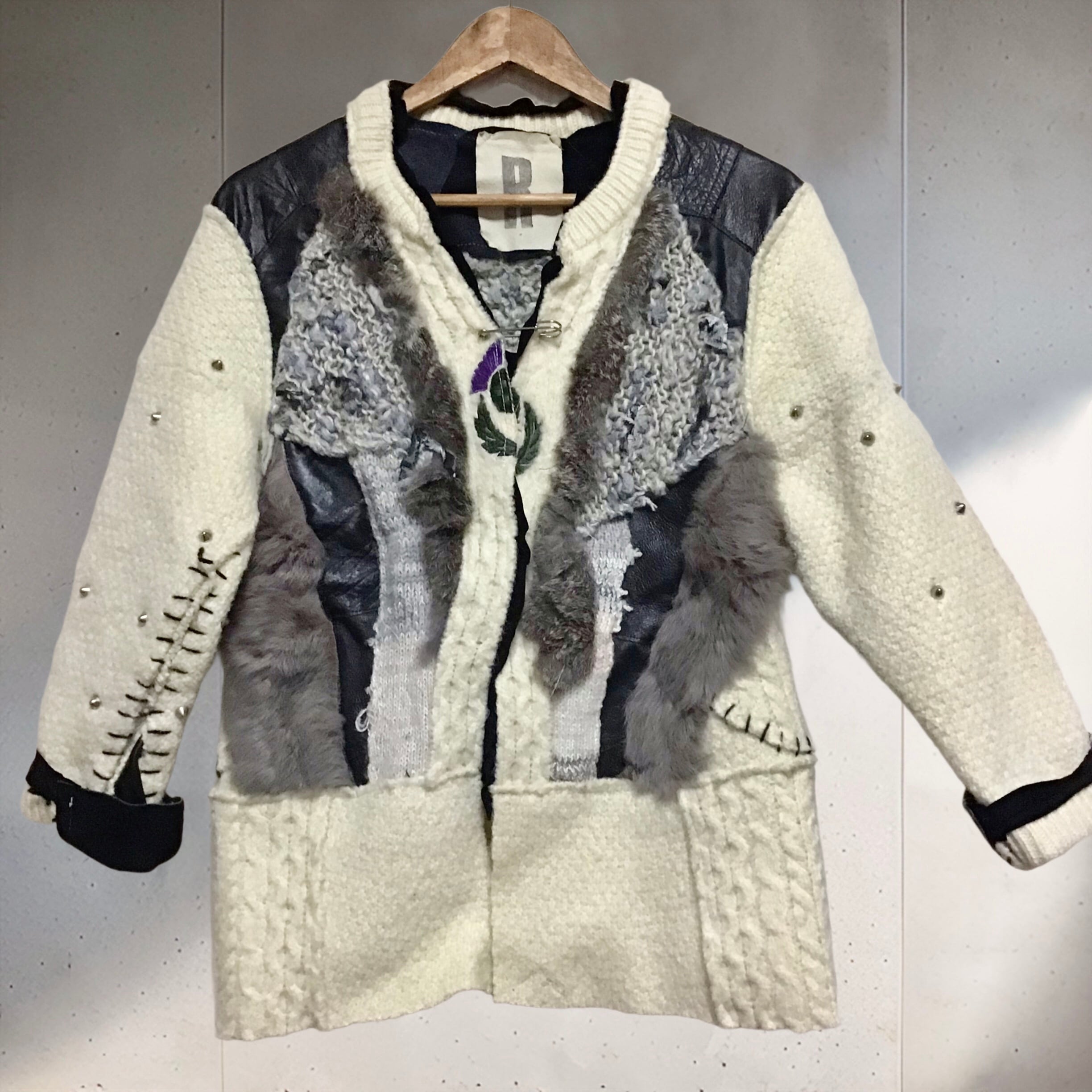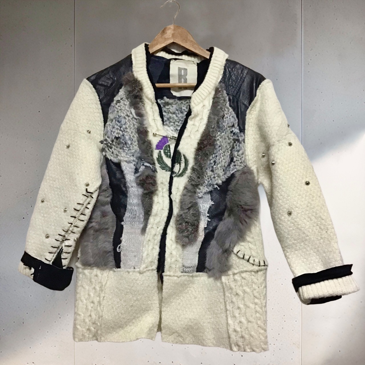 ロンドンポートベロー出身のデザイナー、ヴィンテージカスタムを得意とするReemのニットジャケット。ニットを再構築したジャケットをベースにレザーやファー、スタッズを組み合わせたReemらしいハンドメイドでどこかパンクのエッセンスを感じるオンリーワンなお品です♡
