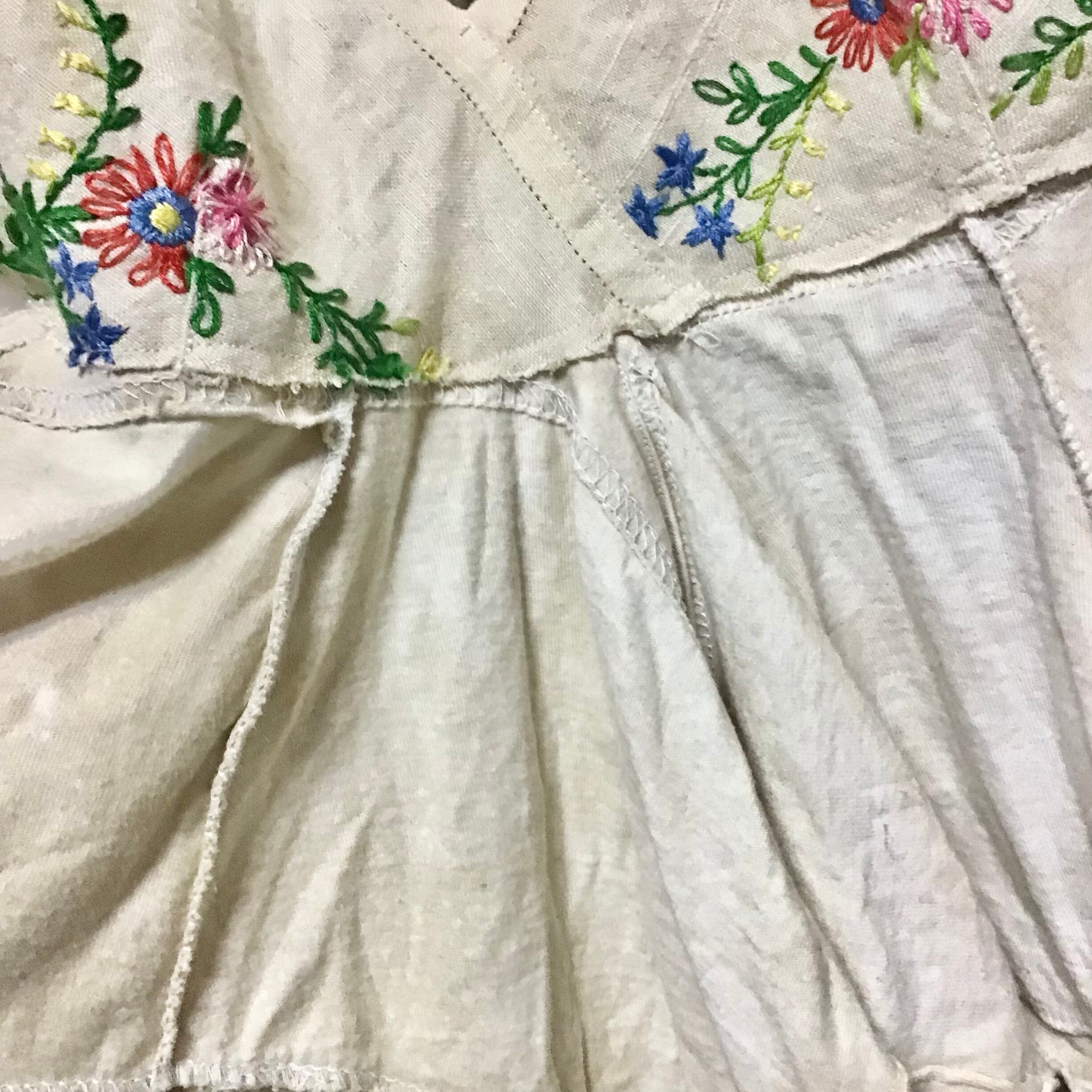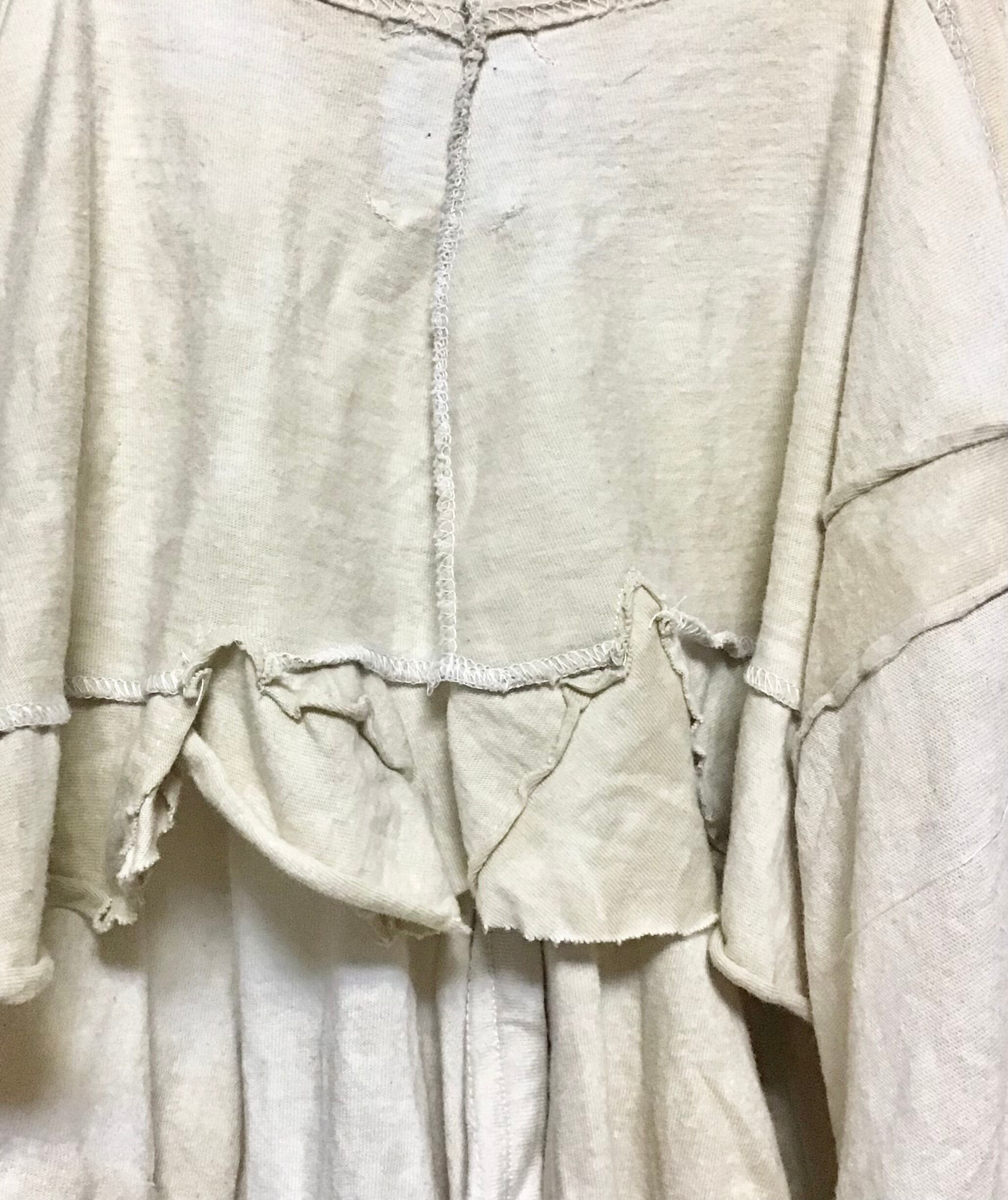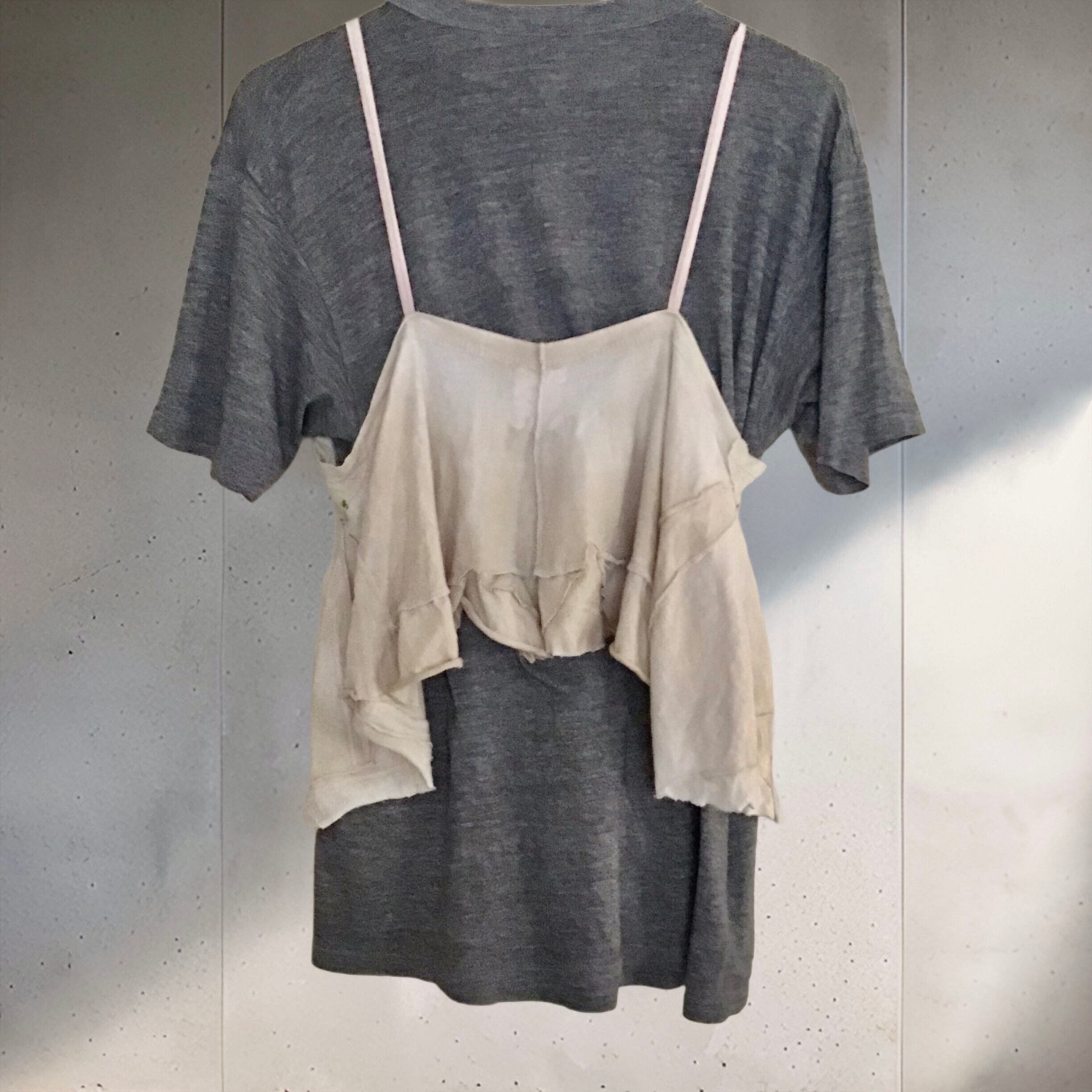ポートベロー出身デザイナー“Reem”のキャミソール。ヴィンテージ素材を紅茶染めし再構築したものです♡刺繍の入った胸の部分はテーブルクロスの様な素材で、下部分は伸縮性のあるTシャツの様な素材です◎タートルネックやTシャツに重ねてオールシーズン使えるお品です◎