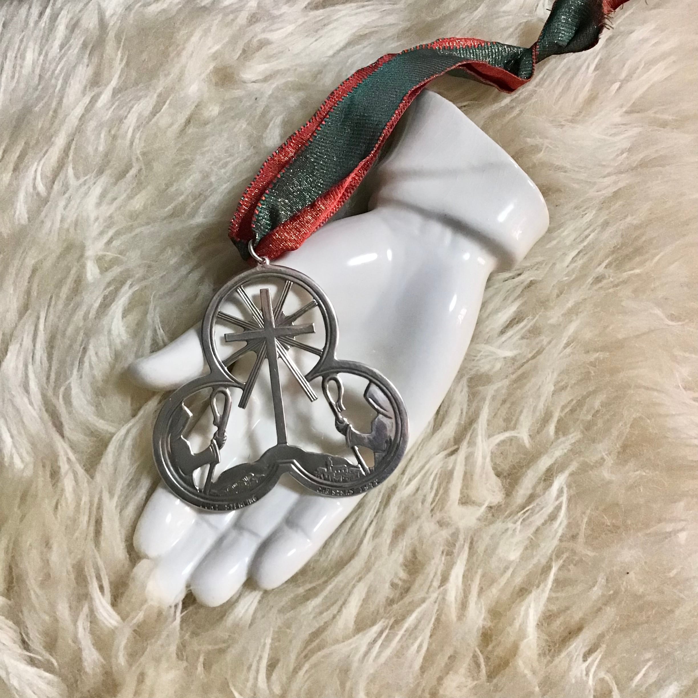 1972年製のシルバークリスマスオーナメント。神様が見守ってくれている様なデザインとクローバー型が可愛いらしい雰囲気です♡そのまま飾っても、バッグチャームやブローチとしても、様々な使い方ができるお品です◎
