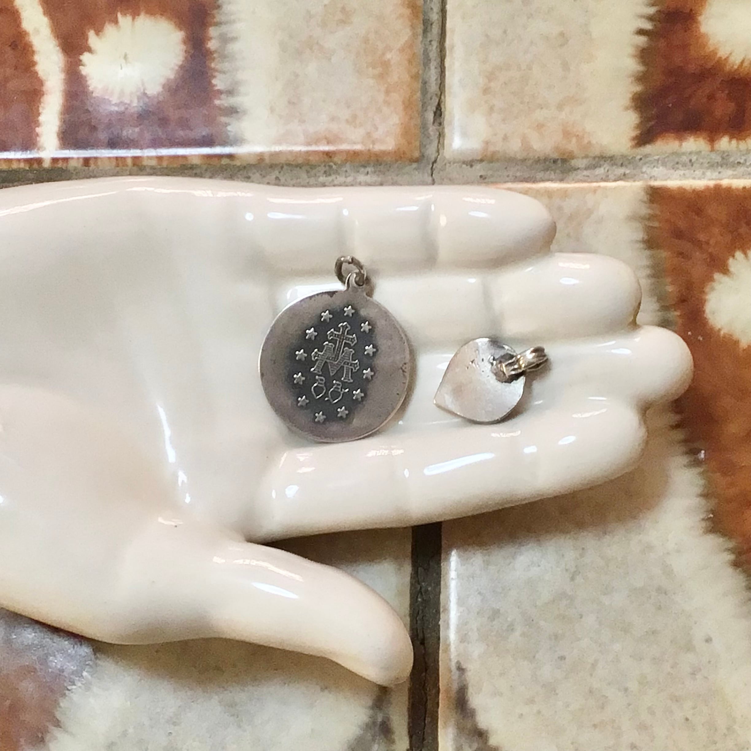 古いメダイ。一緒に着けても素敵な2個セットです♡大きな方の裏のデザインが店主お気に入りです◎大切な方へのギフトにも!