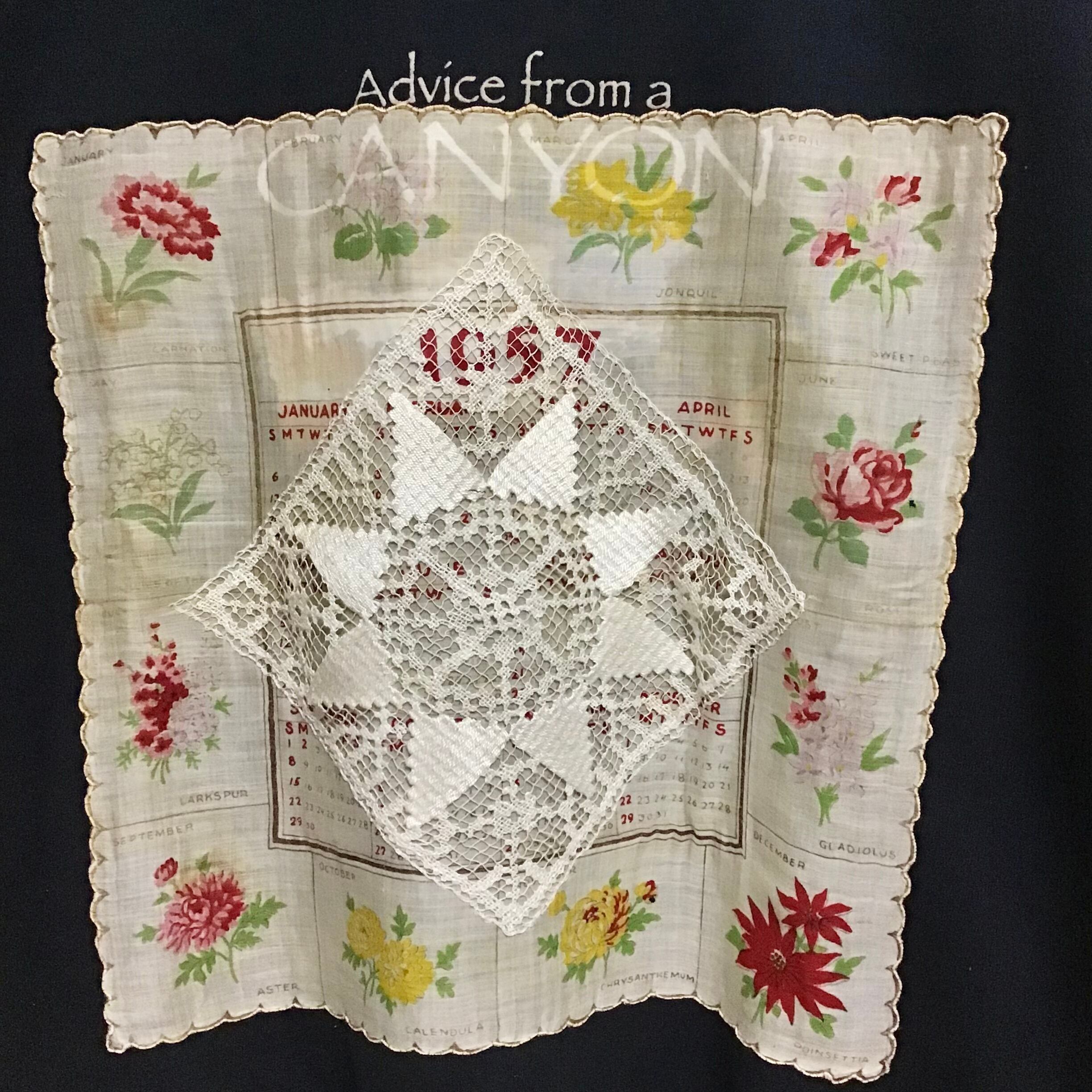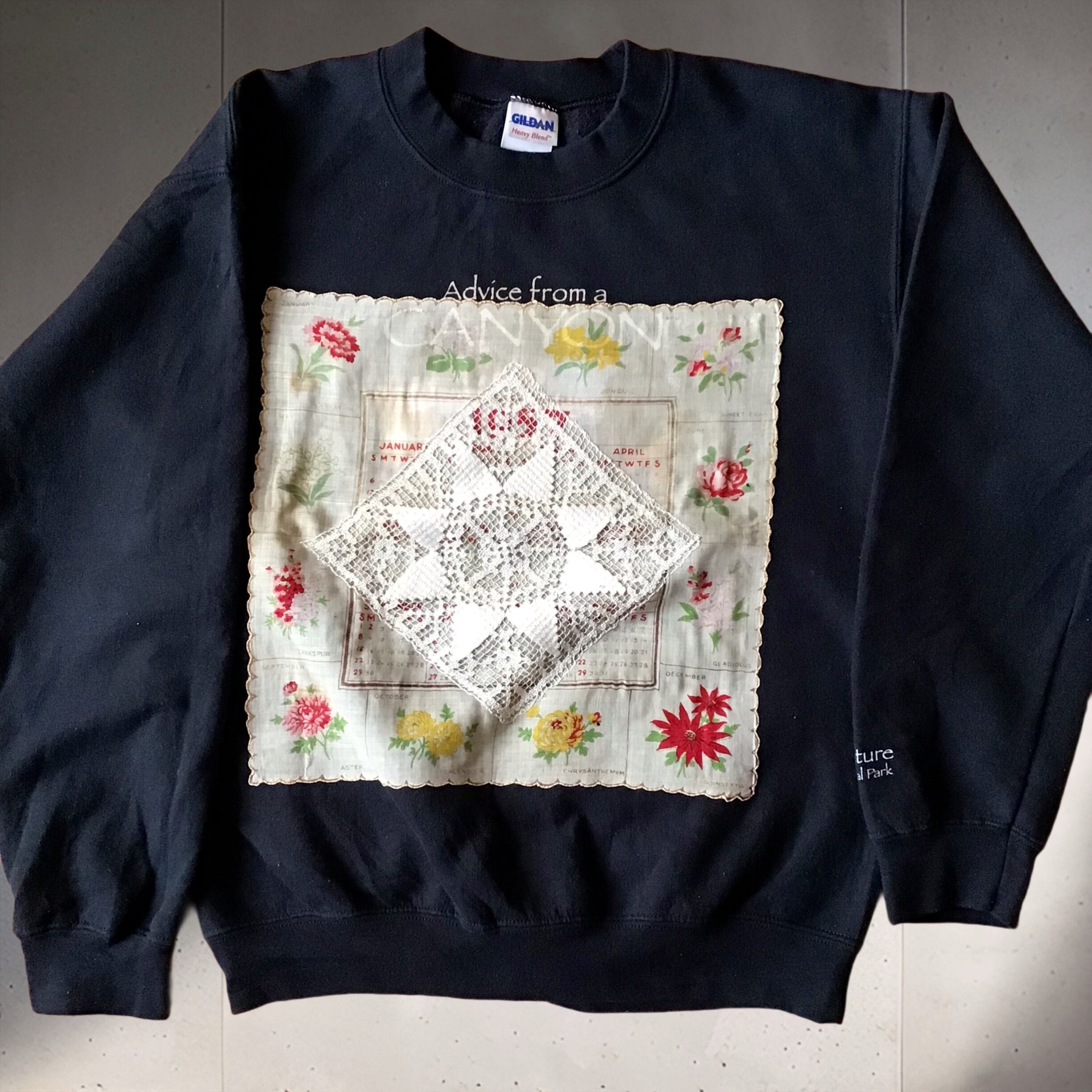 リメイクスウェット。90年代頃のプリントスウェットに古いハンカチやアンティークレースをあしらいました♡プリントが少し透けてそれも良いデザインになっています◎