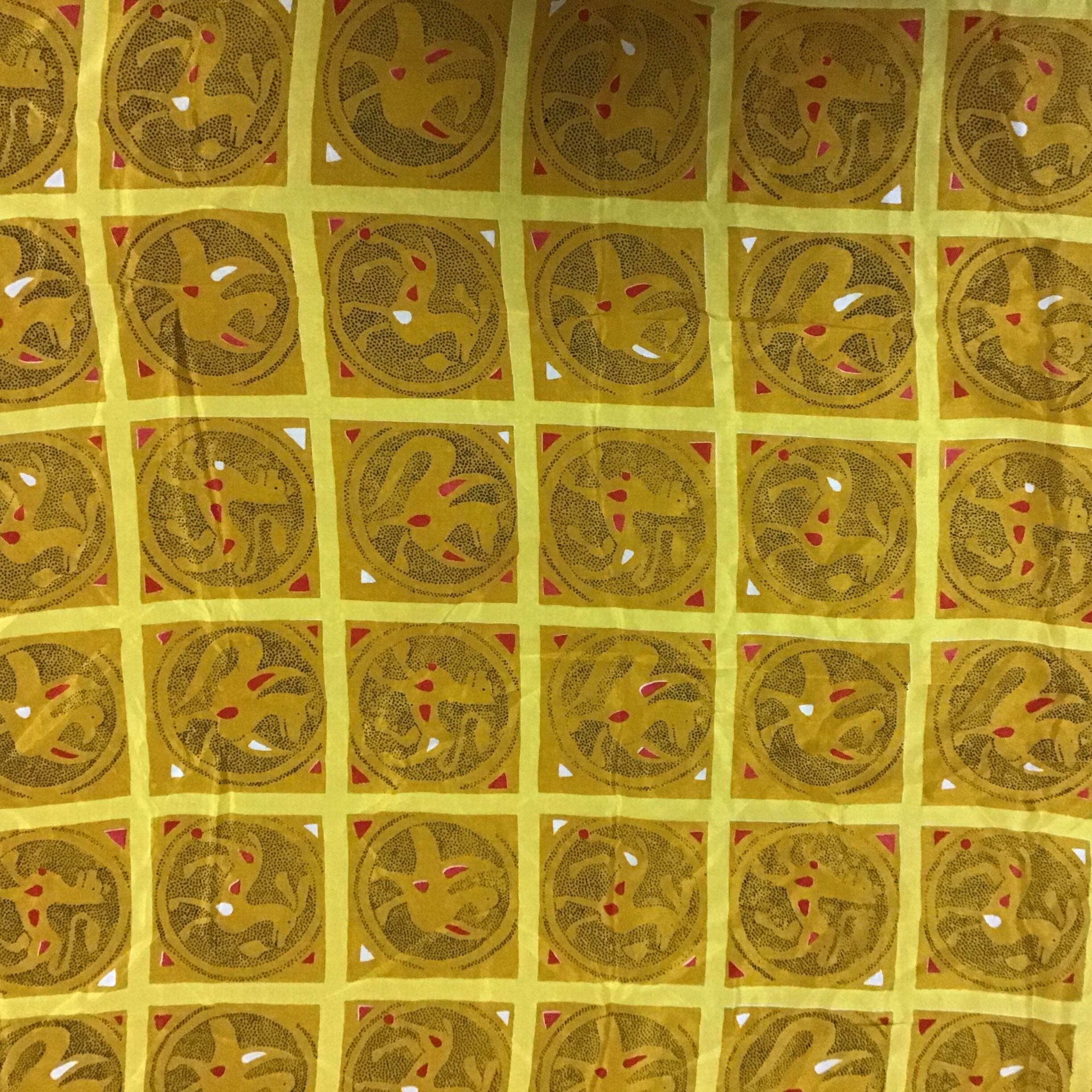 Veraのシルクスカーフ。ファンタジーな雰囲気の動物たちが並ぶ不思議なプリント。肌なじみの良いイエローベースで、シフォンのような軽い素材感で巻きやすいと思います♡