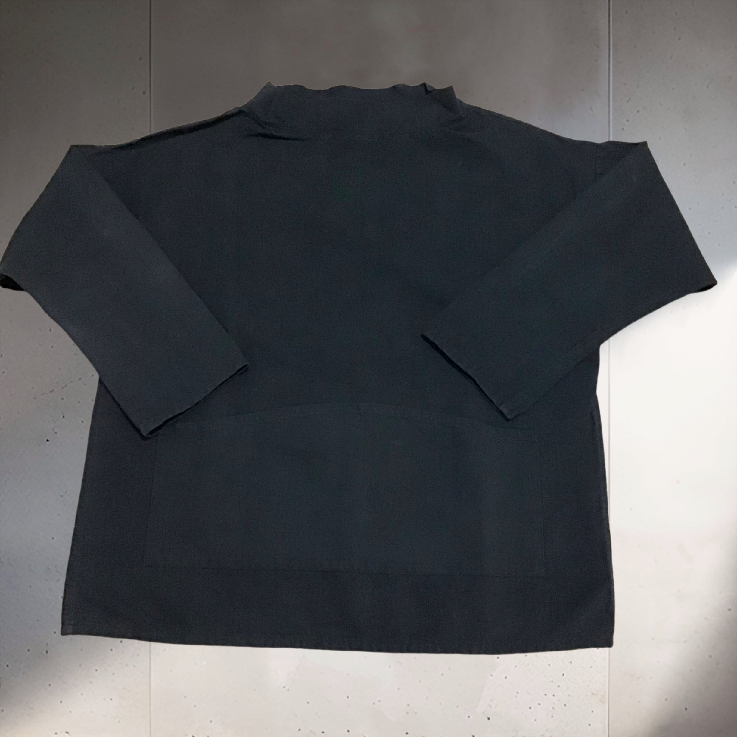 リネンのフィッシャーマンズスモック。元々は作業着としてできたものですが、ハイネックの首元や身幅たっぷりのシルエット、前ポケットなどの機能美満載のディテールが洗練されていてとても素敵です♡