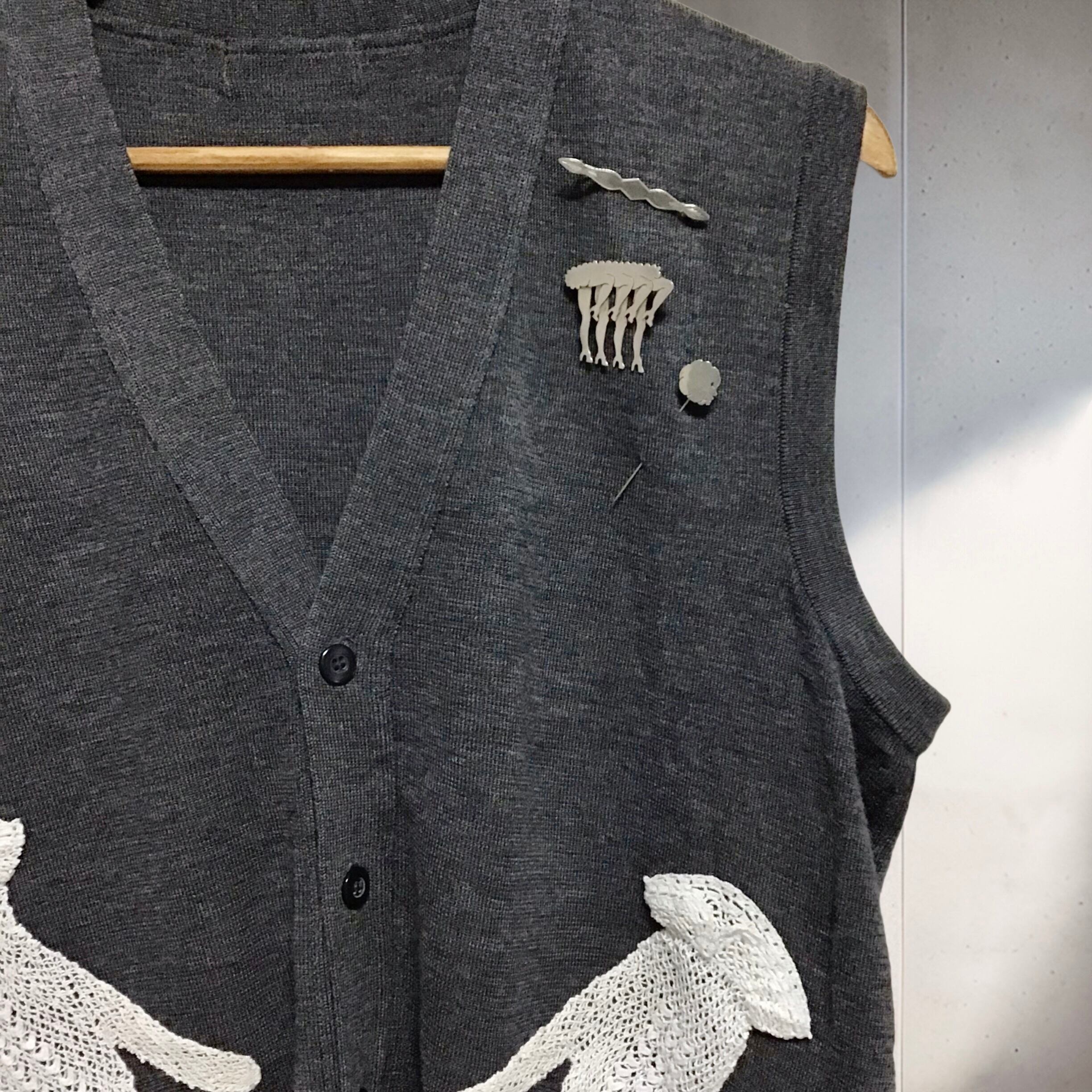 1980年代のシルバーブローチ。ダンスを踊る足のデザイン!ユニークでとてもカッコいいお品です♡デニムジャケットやヴィンテージスウェットなどあえてメンズライクなコーディネートに合わせたり、レディな着こなしのワンポイントにもおすすめです◎